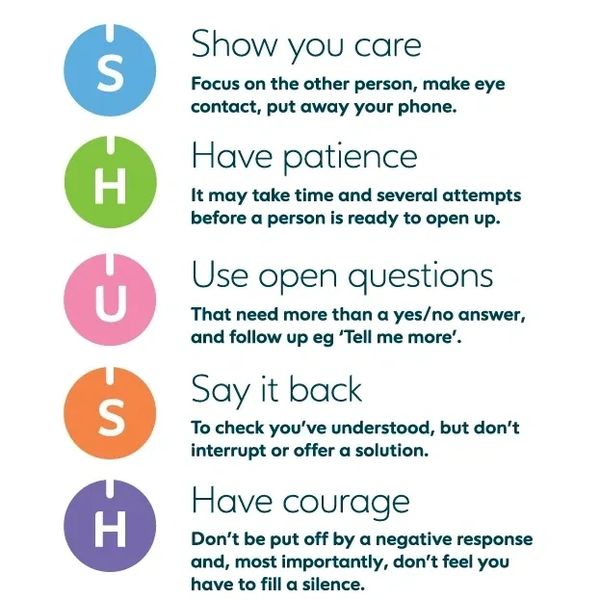 If you’re worried someone is suicidal, it’s okay to ask them directly. Research shows that this helps - because it gives them permission to tell you how they feel, and shows that they are not a burden.